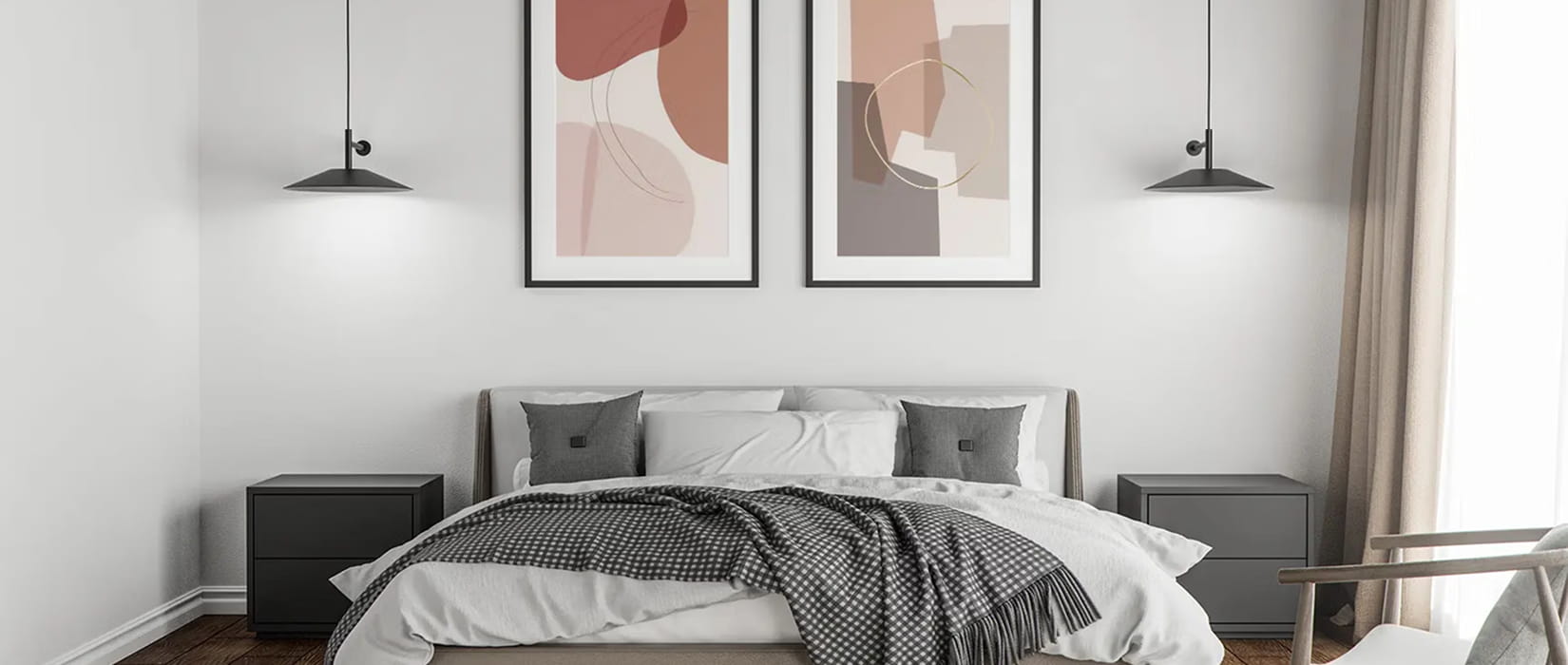 Хоум стейджинг квартир та будинків включає і декор, як подушки, пледи, рослини, картини, полички.